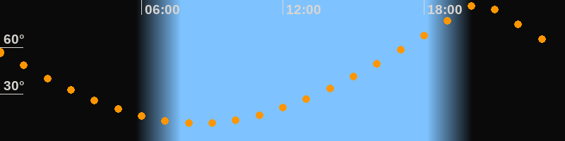 | Höchster Stand (Kulmination) | 20:23 Uhr (h = 89,9°) |