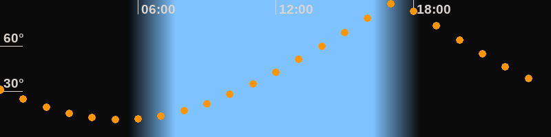 | Höchster Stand (Kulmination) | 17:13 Uhr (h = 89,9°) |