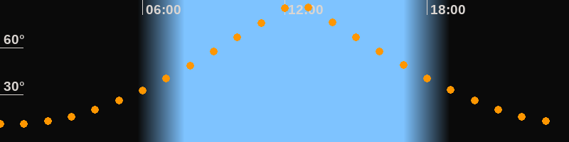 | Höchster Stand (Kulmination) | 12:30 Uhr (h = 89,9°) |
