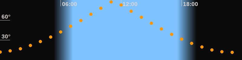| Höchster Stand (Kulmination) | 11:15 Uhr (h = 89,9°) |