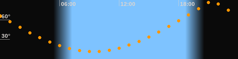 | Höchster Stand (Kulmination) | 21:23 Uhr (h = 89,9°) |