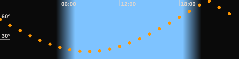 | Höchster Stand (Kulmination) | 20:47 Uhr (h = 89,9°) |