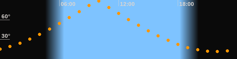 | Höchster Stand (Kulmination) | 09:50 Uhr (h = 89,9°) |