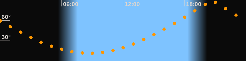 | Höchster Stand (Kulmination) | 20:40 Uhr (h = 89,9°) |