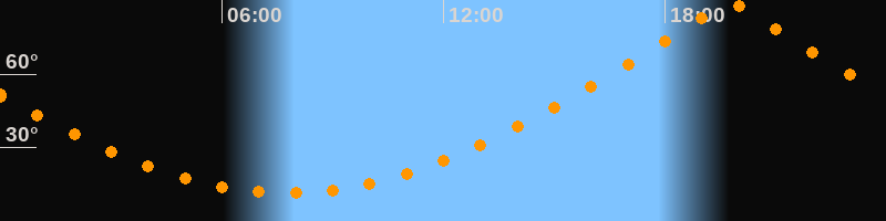 | Höchster Stand (Kulmination) | 19:45 Uhr (h = 89,9°) |