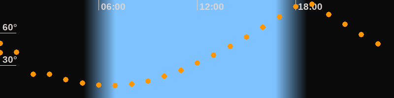 | Höchster Stand (Kulmination) | 18:38 Uhr (h = 89,9°) |
