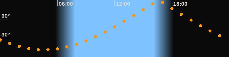 | Höchster Stand (Kulmination) | 16:36 Uhr (h = 89,9°) |