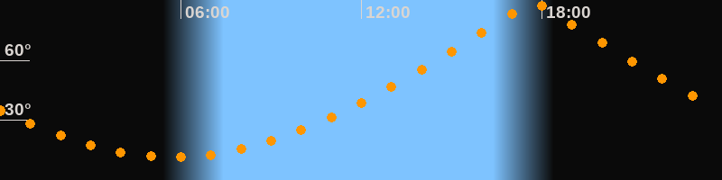 | Höchster Stand (Kulmination) | 17:43 Uhr (h = 89,9°) |