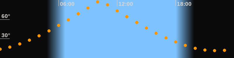 | Höchster Stand (Kulmination) | 10:15 Uhr (h = 89,9°) |