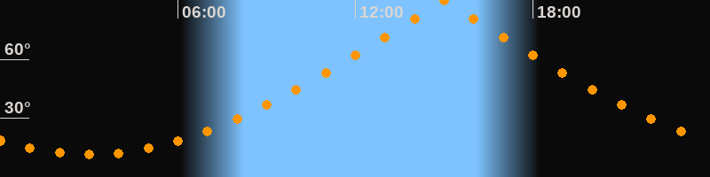 | Höchster Stand (Kulmination) | 14:59 Uhr (h = 89,9°) |