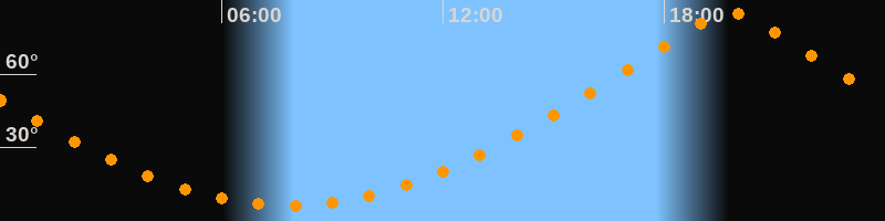 | Höchster Stand (Kulmination) | 19:49 Uhr (h = 84,9°) |