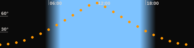 | Höchster Stand (Kulmination) | 11:50 Uhr (h = 84,9°) |
