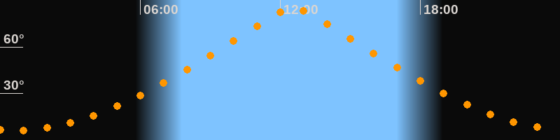 | Höchster Stand (Kulmination) | 12:34 Uhr (h = 84,9°) |