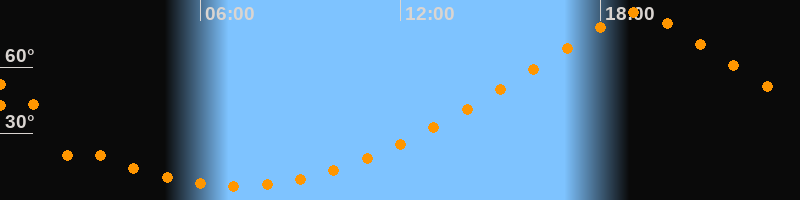 | Höchster Stand (Kulmination) | 19:05 Uhr (h = 84,9°) |