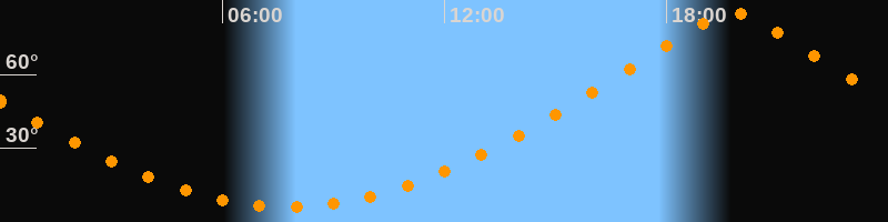 | Höchster Stand (Kulmination) | 19:46 Uhr (h = 84,9°) |