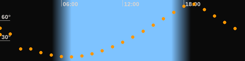 | Höchster Stand (Kulmination) | 18:42 Uhr (h = 84,9°) |