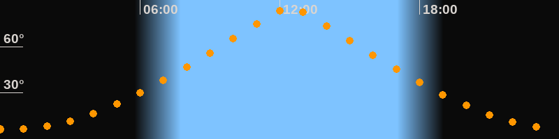 | Höchster Stand (Kulmination) | 12:25 Uhr (h = 84,9°) |