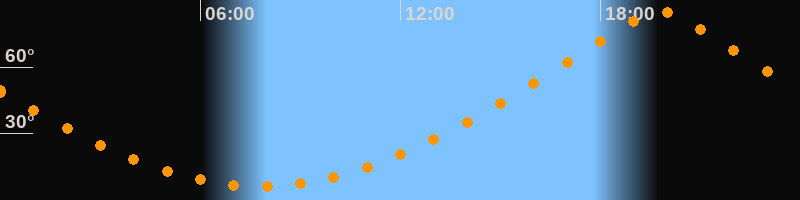 | Höchster Stand (Kulmination) | 19:47 Uhr (h = 84,9°) |