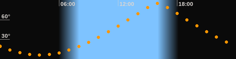 | Höchster Stand (Kulmination) | 16:00 Uhr (h = 84,9°) |