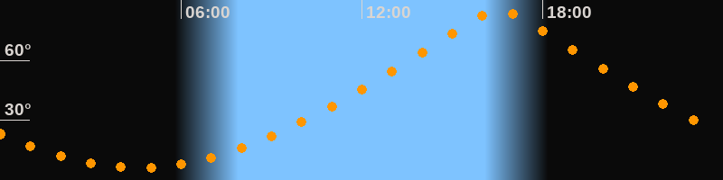 | Höchster Stand (Kulmination) | 16:33 Uhr (h = 84,9°) |