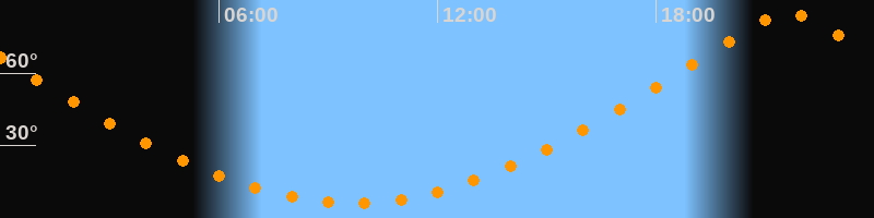 | Höchster Stand (Kulmination) | 21:38 Uhr (h = 84,9°) |