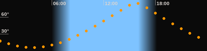 | Höchster Stand (Kulmination) | 15:44 Uhr (h = 84,9°) |