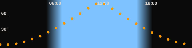 | Höchster Stand (Kulmination) | 12:28 Uhr (h = 84,9°) |