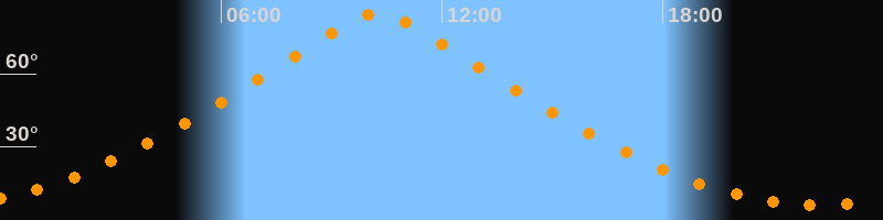| Höchster Stand (Kulmination) | 10:15 Uhr (h = 84,9°) |