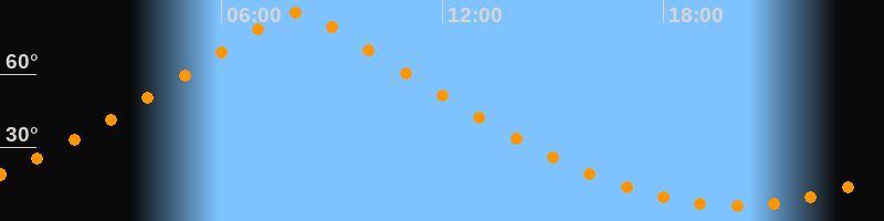 | Höchster Stand (Kulmination) | 08:02 Uhr (h = 84,9°) |