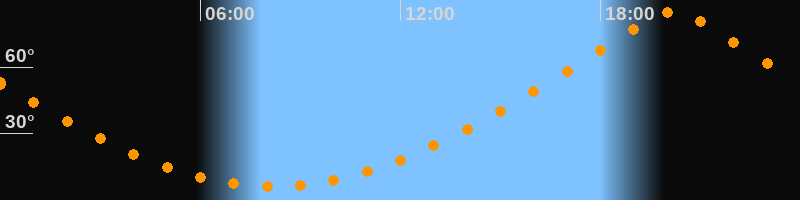 | Höchster Stand (Kulmination) | 20:11 Uhr (h = 84,9°) |