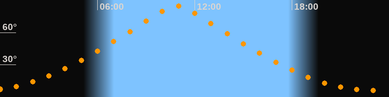 | Höchster Stand (Kulmination) | 10:53 Uhr (h = 84,9°) |