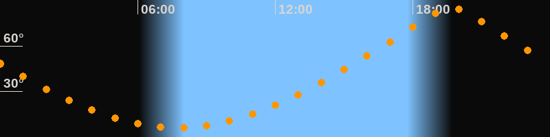 | Höchster Stand (Kulmination) | 19:42 Uhr (h = 84,9°) |