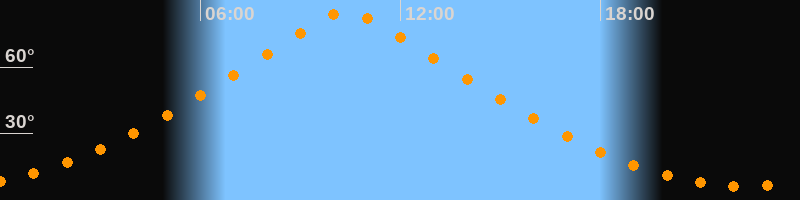 | Höchster Stand (Kulmination) | 10:23 Uhr (h = 84,9°) |