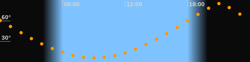 | Höchster Stand (Kulmination) | 21:01 Uhr (h = 84,9°) |
