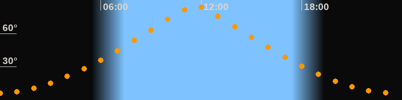 | Höchster Stand (Kulmination) | 11:39 Uhr (h = 84,9°) |
