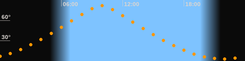 | Höchster Stand (Kulmination) | 09:54 Uhr (h = 81,8°) |