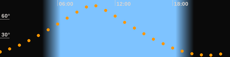 | Höchster Stand (Kulmination) | 09:38 Uhr (h = 81,8°) |