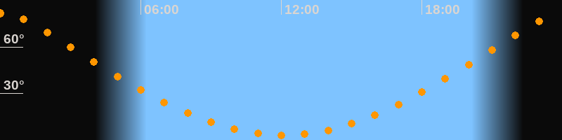 | Höchster Stand (Kulmination) | 00:03 Uhr (h = 81,8°) |
