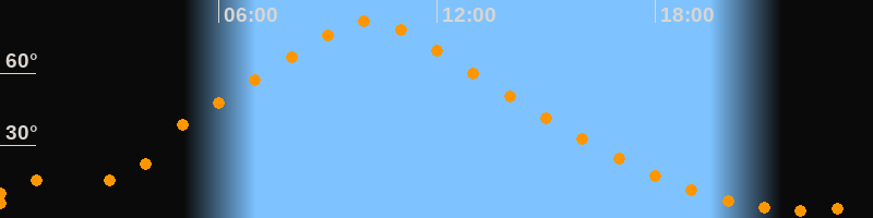 | Höchster Stand (Kulmination) | 10:09 Uhr (h = 81,8°) |