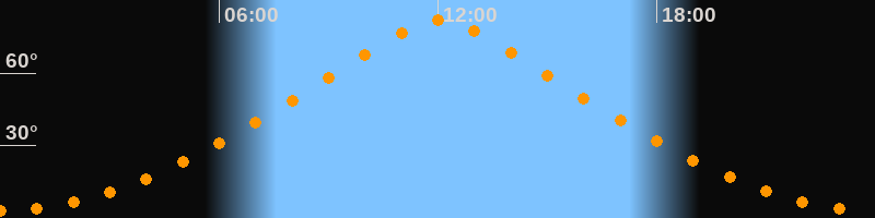 | Höchster Stand (Kulmination) | 12:03 Uhr (h = 81,8°) |