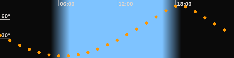 | Höchster Stand (Kulmination) | 18:25 Uhr (h = 81,8°) |