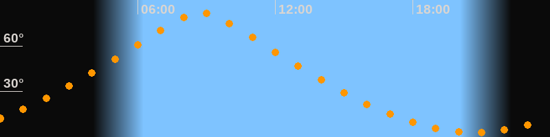 | Höchster Stand (Kulmination) | 08:44 Uhr (h = 81,8°) |
