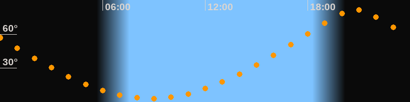 | Höchster Stand (Kulmination) | 20:48 Uhr (h = 81,8°) |