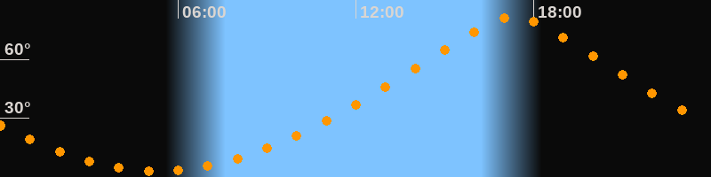 | Höchster Stand (Kulmination) | 17:20 Uhr (h = 81,8°) |