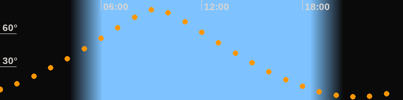 | Höchster Stand (Kulmination) | 09:16 Uhr (h = 81,8°) |
