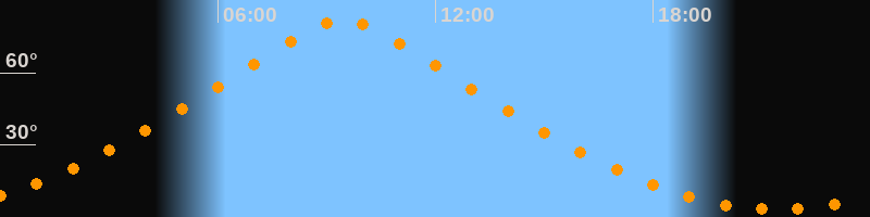 | Höchster Stand (Kulmination) | 09:27 Uhr (h = 81,8°) |