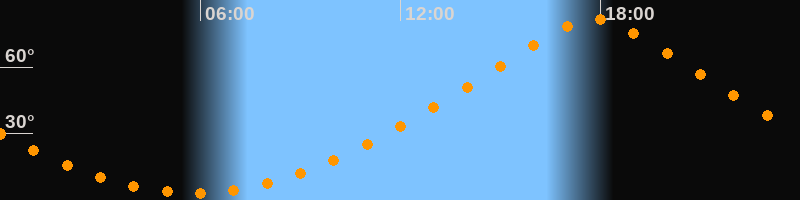 | Höchster Stand (Kulmination) | 17:47 Uhr (h = 81,8°) |