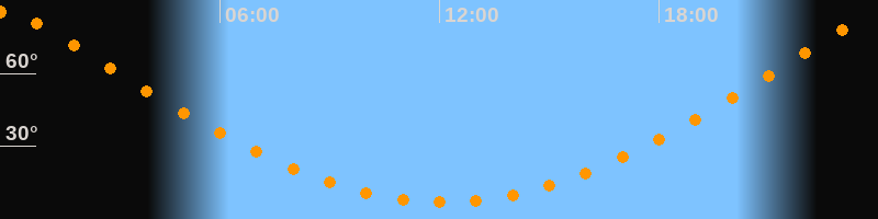 | Höchster Stand (Kulmination) | 00:07 Uhr (h = 85,6°) |
