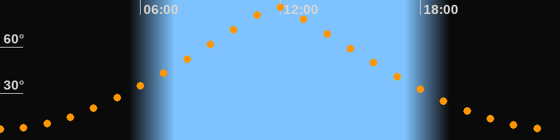 | Höchster Stand (Kulmination) | 11:51 Uhr (h = 85,6°) |
