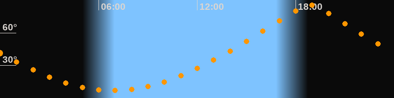 | Höchster Stand (Kulmination) | 18:52 Uhr (h = 85,6°) |